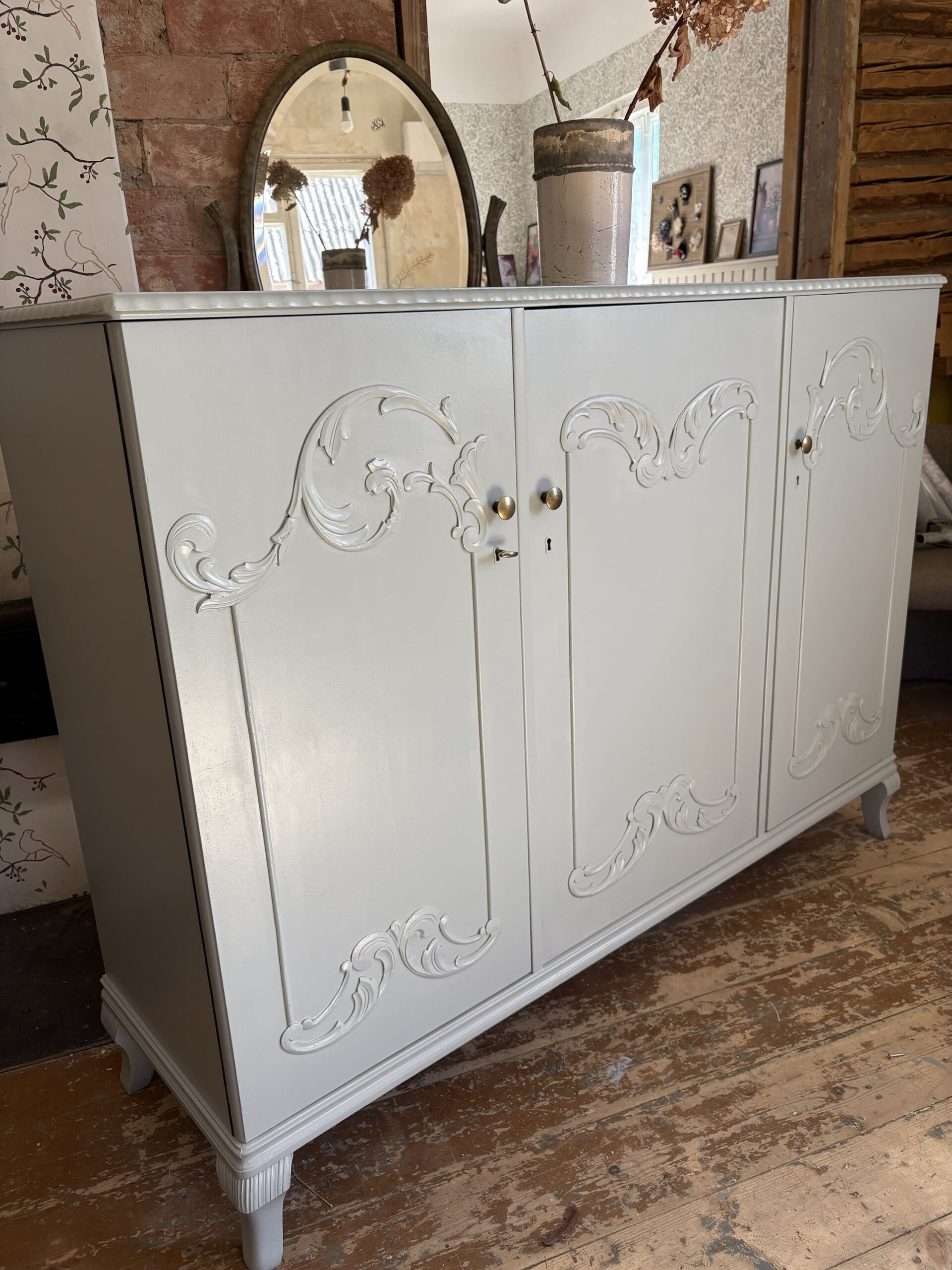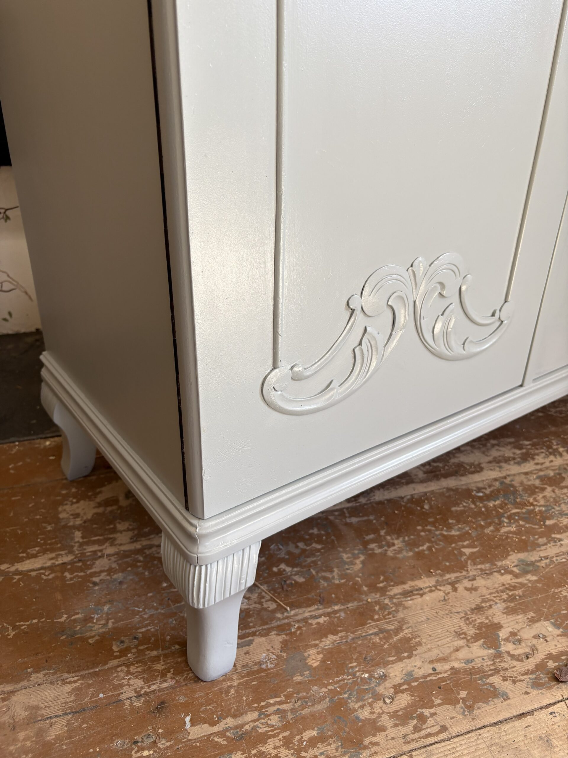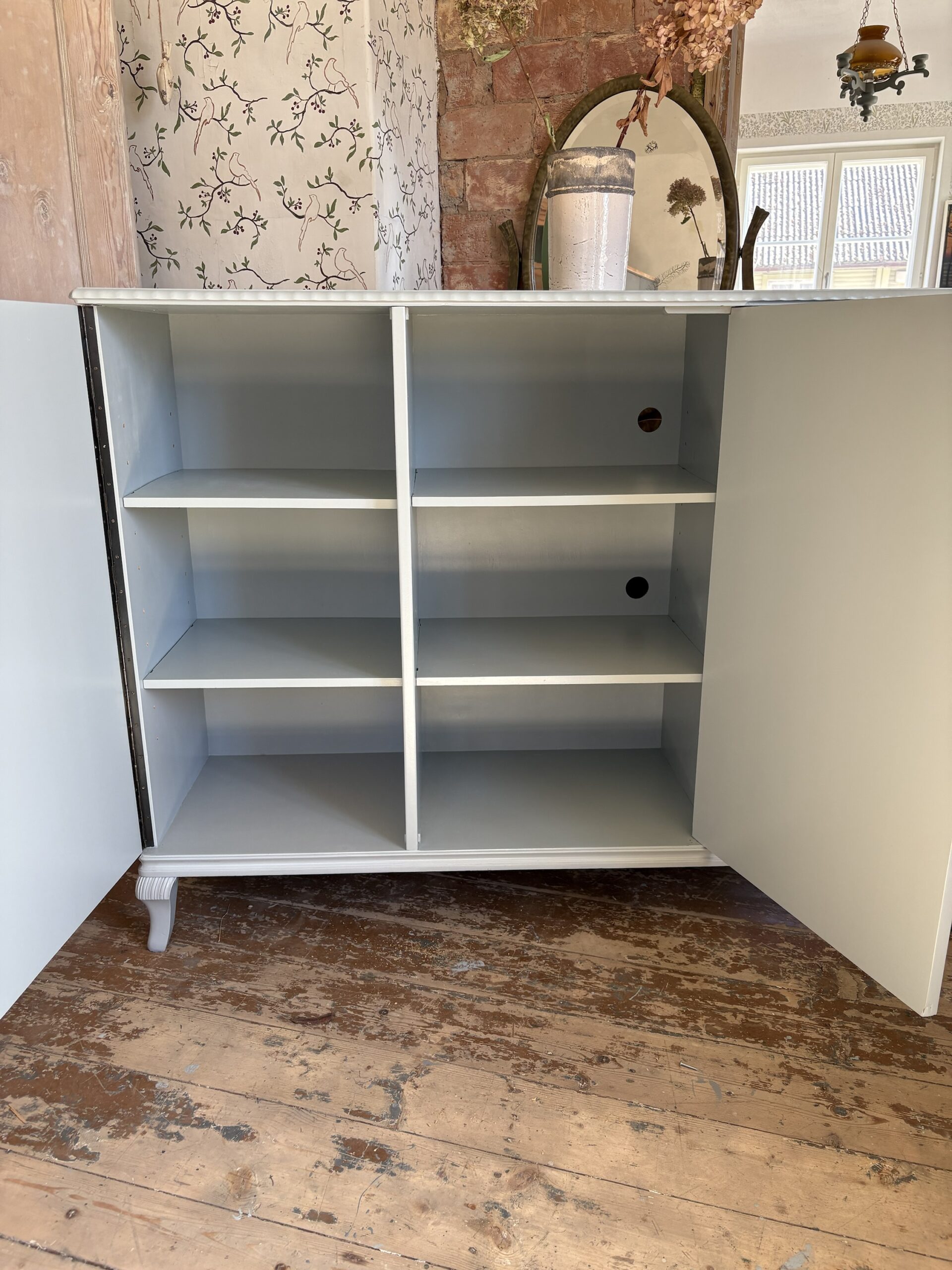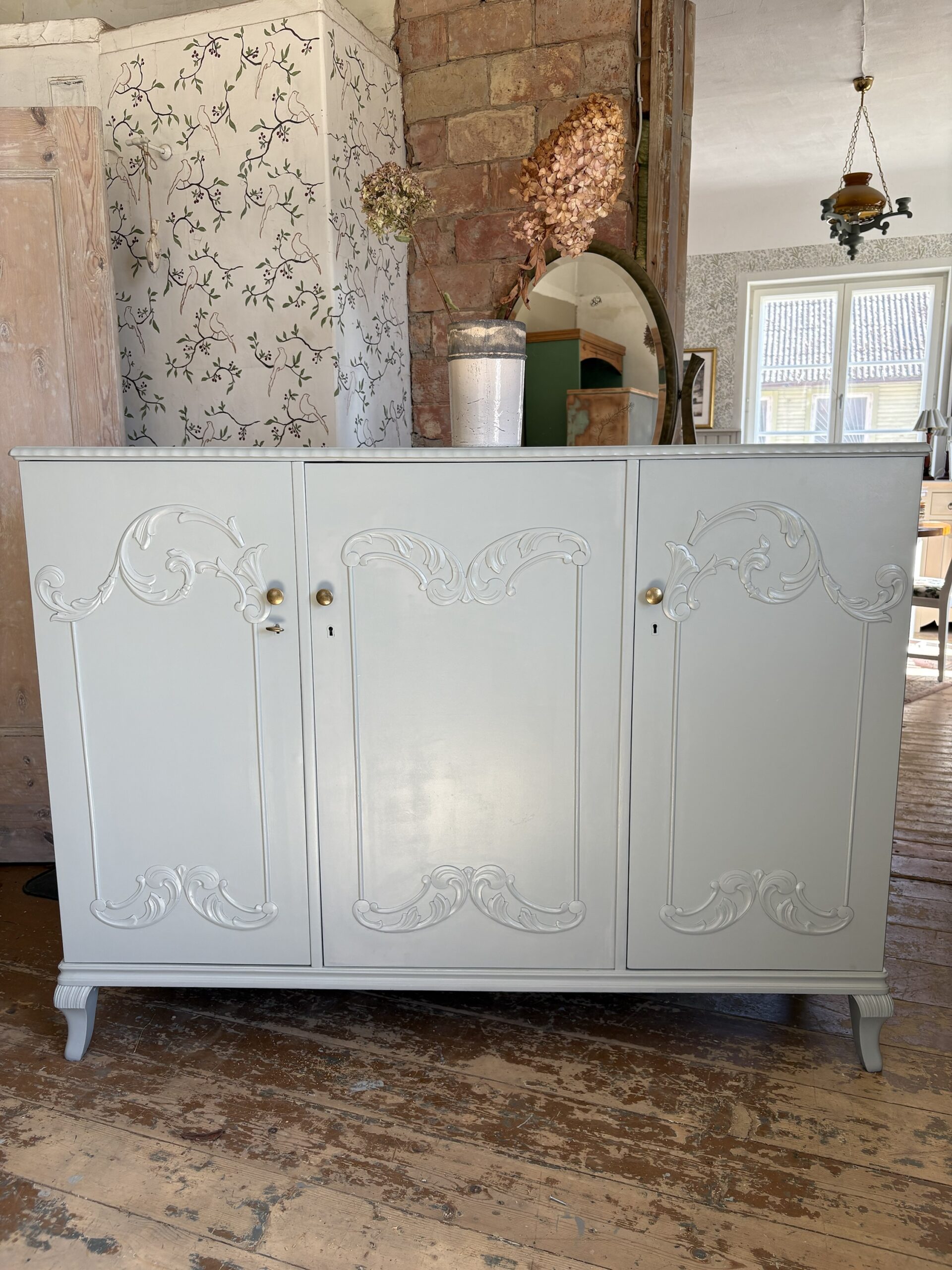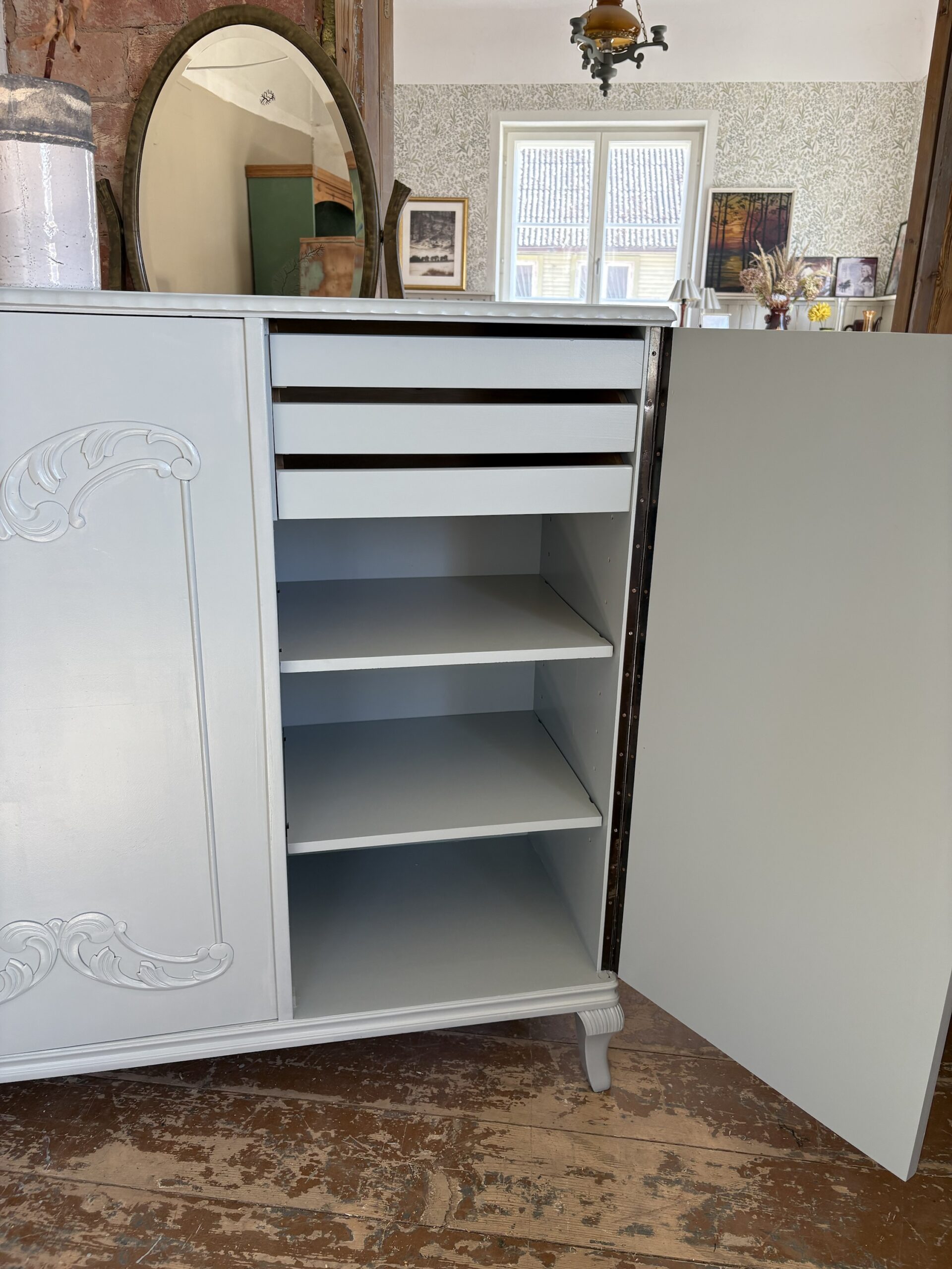 Imeilus ja mahukas halli tooni kapp. Kapp on värvitud Wise Owl OHE mööblivärviga, toon Renovation Grey. Uksed käivad lukku ja riiulivahesid saab muuta.
