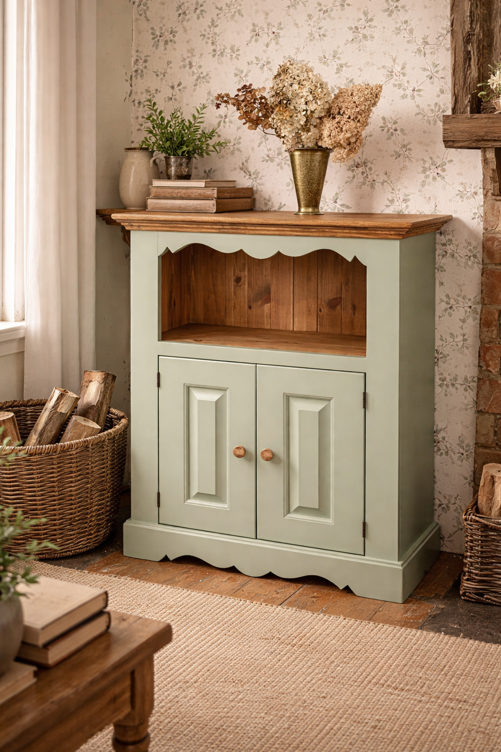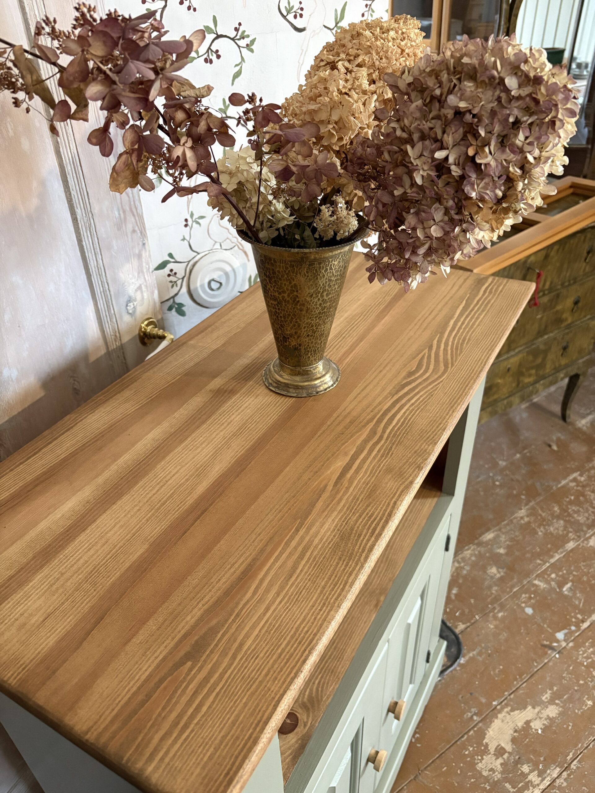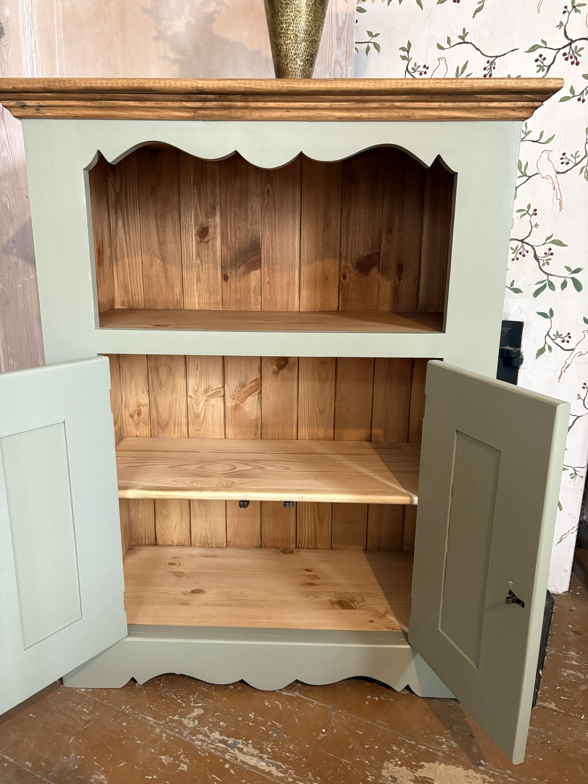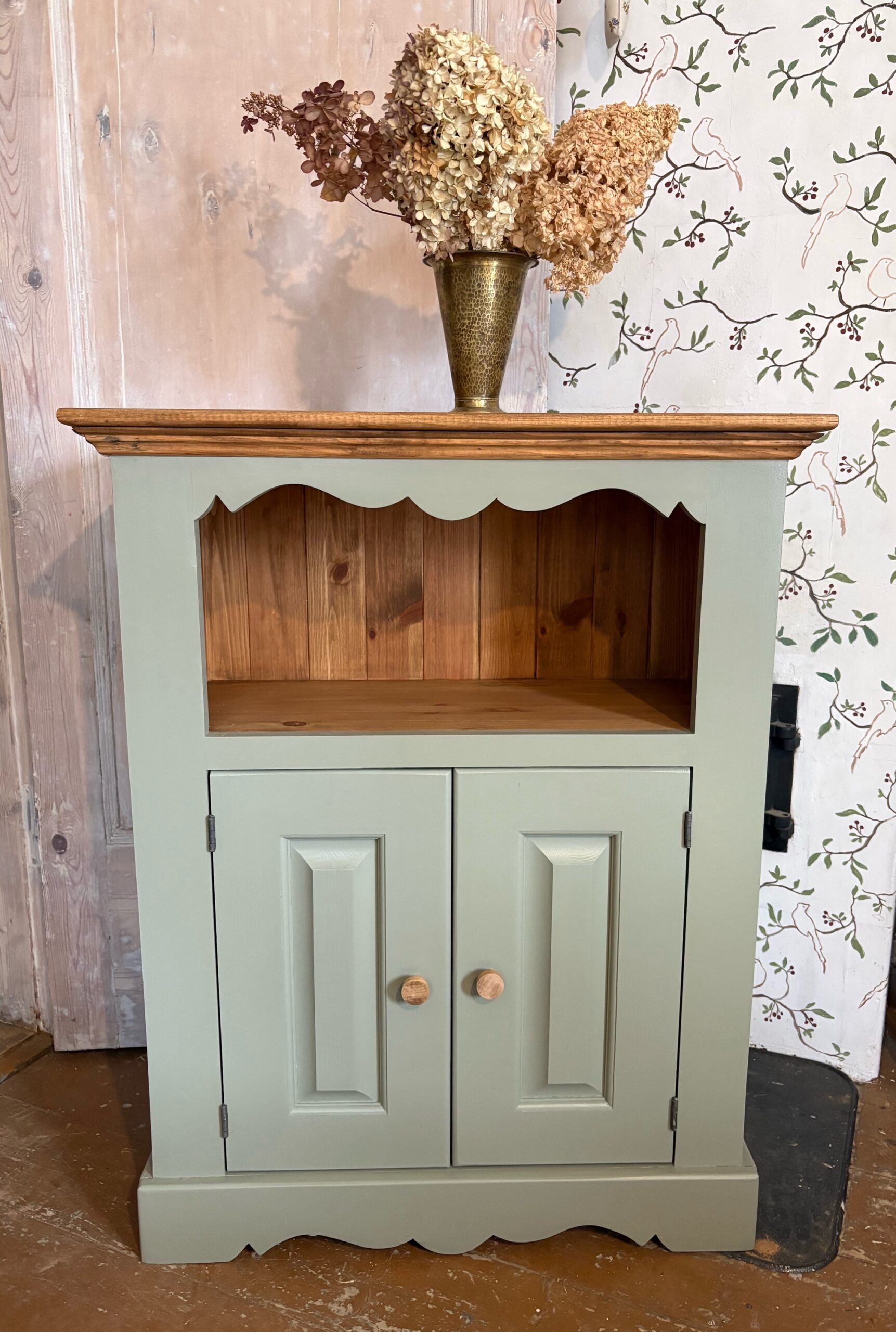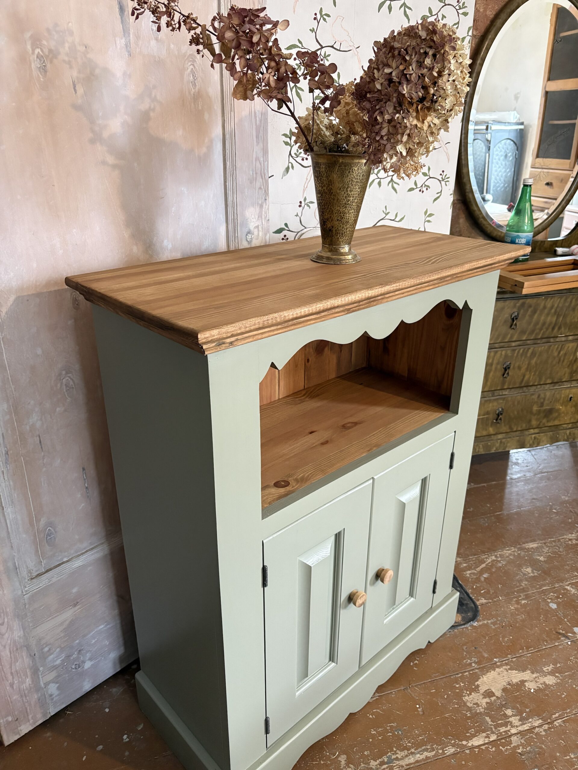 Oliivirohelise ja puidutooniga uus täispuidust kapp.